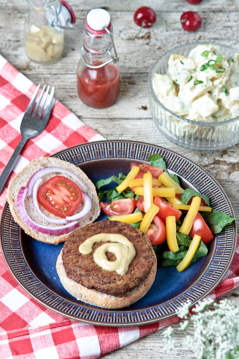 Still, I’m pleased with the outcome, and the photos, which are sure to have one or more people scratching their heads, wondering why I made hamburgers when I’m vegan. Until of course they read the fine print and see that these are made of walnuts and all kinds of healthy veggies!
